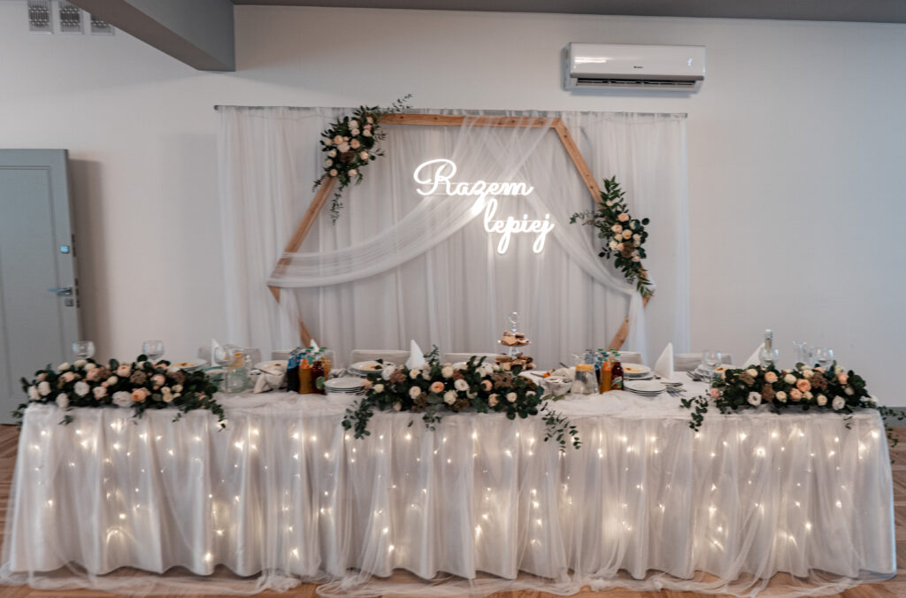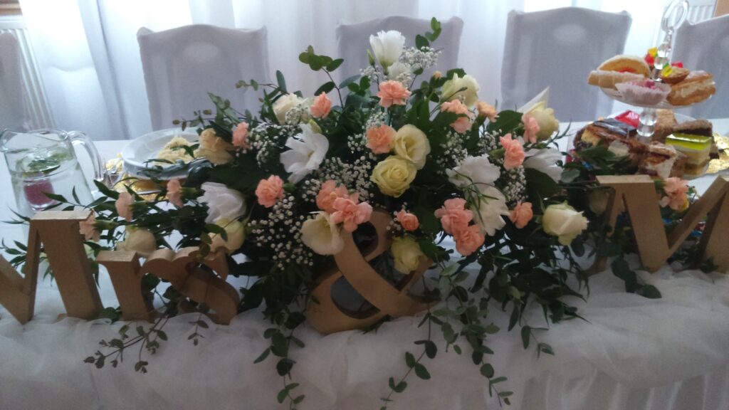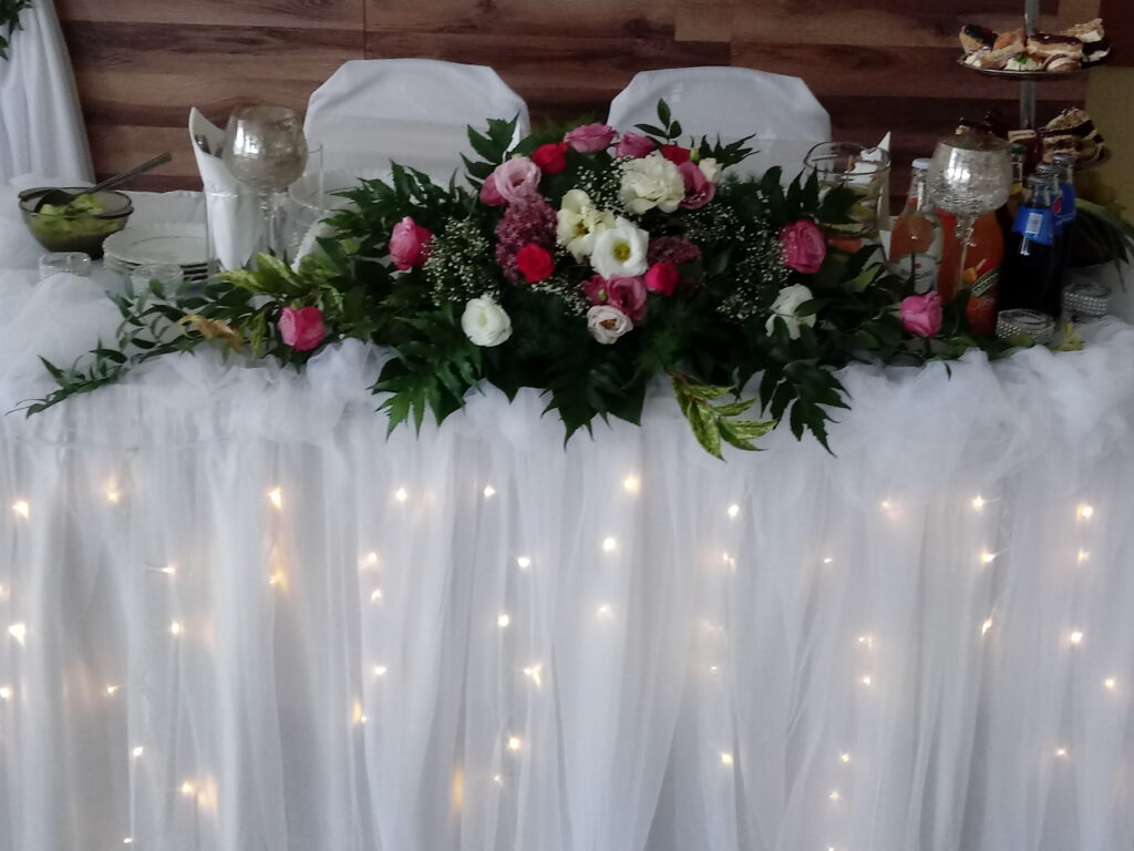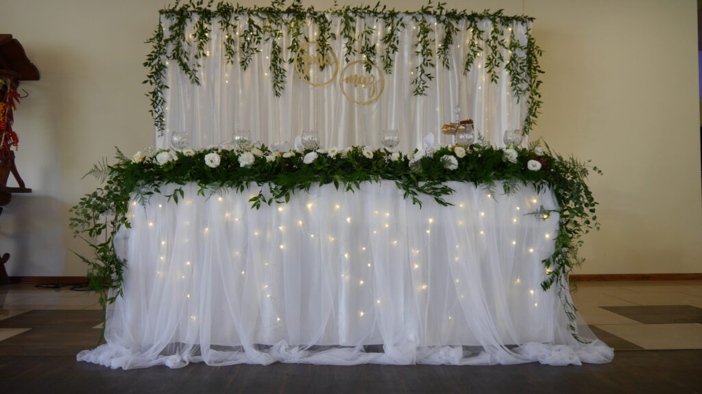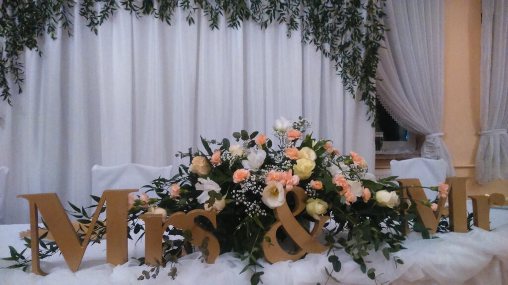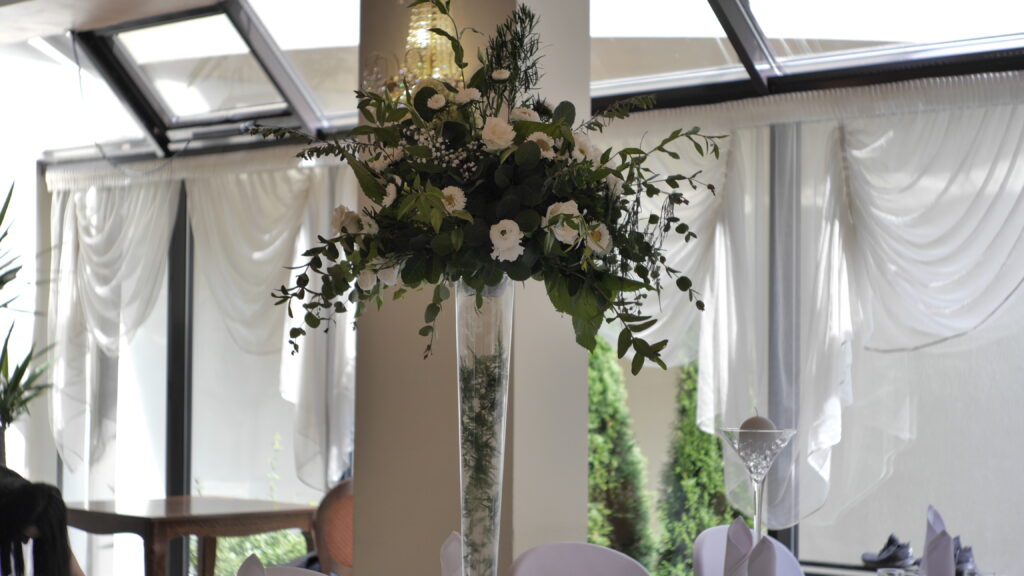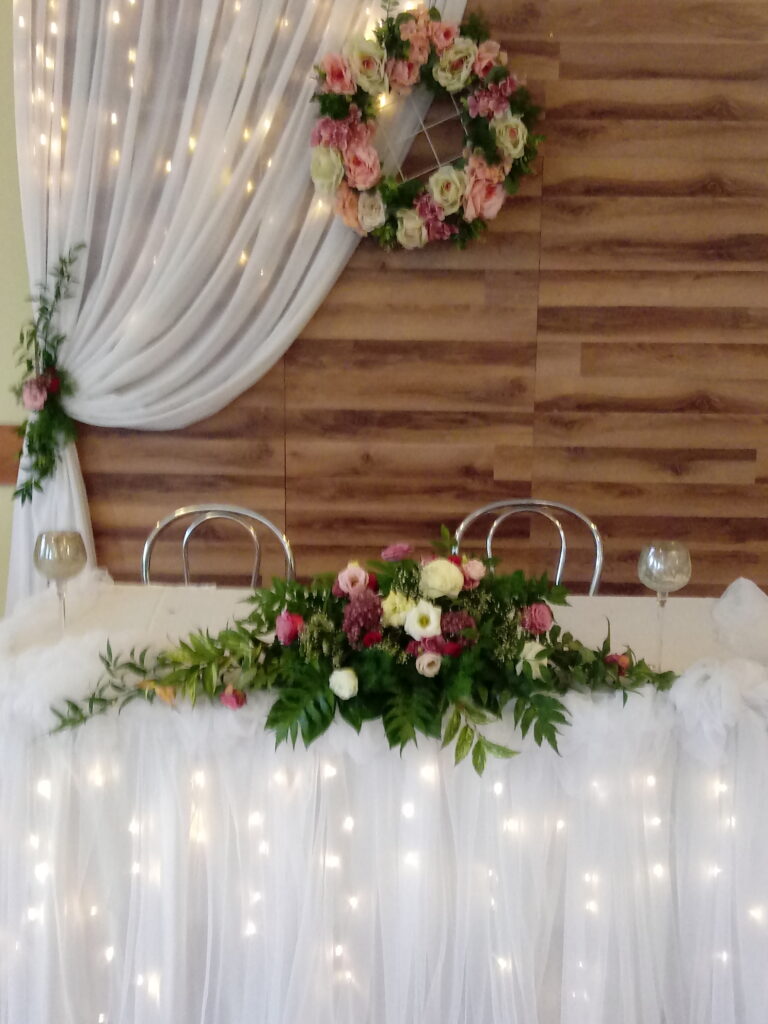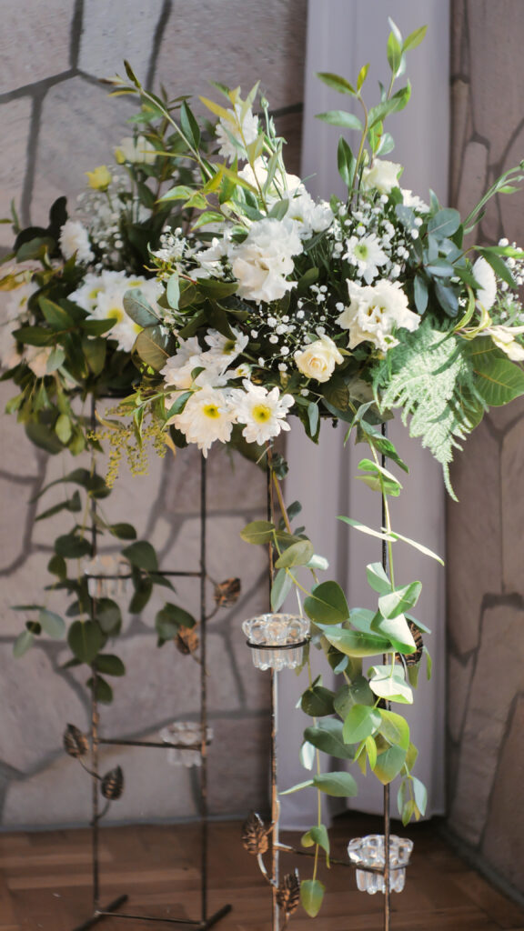 Zadbamy o każdy detal. Oferujemy kompleksowe dekoracje z żywych kwiatów na sali weselnej oraz w kościele, gdzie możemy zaproponować eleganckie aleje kwiatowe, świecące lub inne bardziej minimalistyczne rozwiązania. Goście już na wejściu będą mogli podziwiać piękne powitalne dekoracje sali weselnej, wypełnionej kwiatami i stylowymi dodatkami, jak heksagon za stół państwa młodych. Naszym celem jest, aby każdy element tworzył wyjątkową atmosferę tego szczególnego dnia.