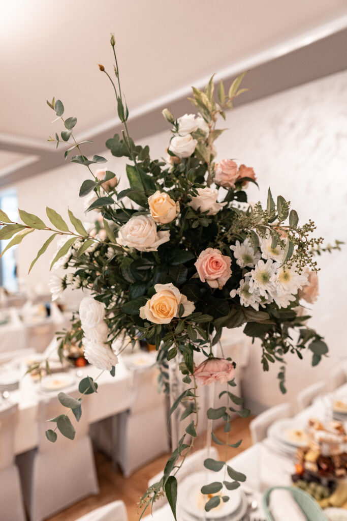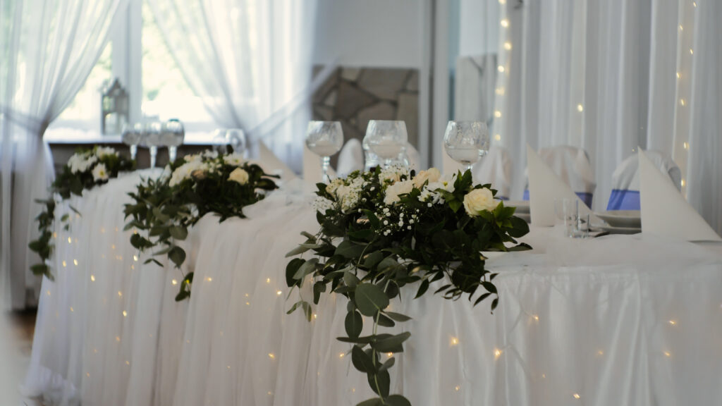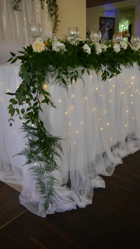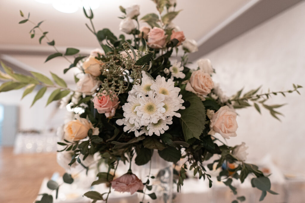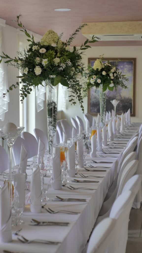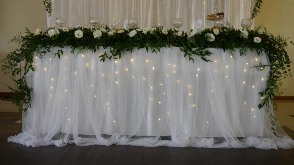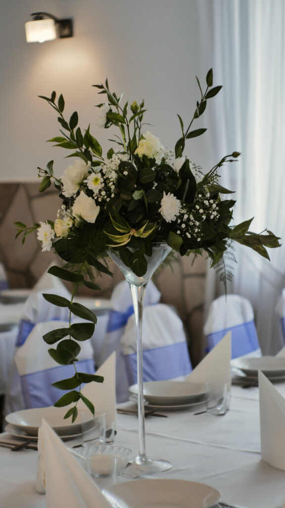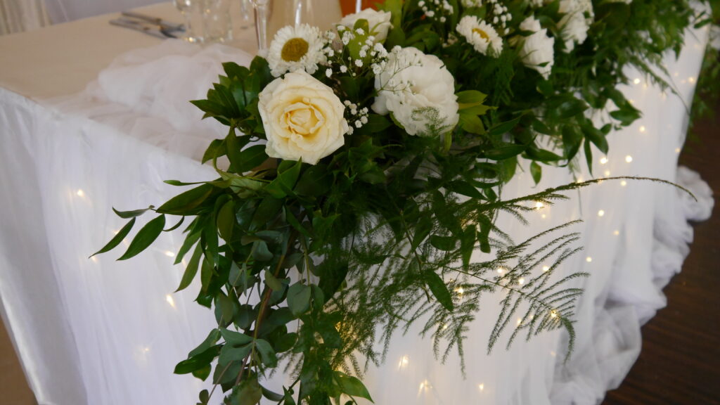 Zadbamy o każdy detal. Oferujemy kompleksowe dekoracje z żywych kwiatów na sali weselnej oraz w kościele, gdzie możemy zaproponować eleganckie aleje kwiatowe, świecące lub inne bardziej minimalistyczne rozwiązania. Goście już na wejściu będą mogli podziwiać piękne powitalne dekoracje sali weselnej, wypełnionej kwiatami i stylowymi dodatkami, jak heksagon za stół państwa młodych. Naszym celem jest, aby każdy element tworzył wyjątkową atmosferę tego szczególnego dnia.